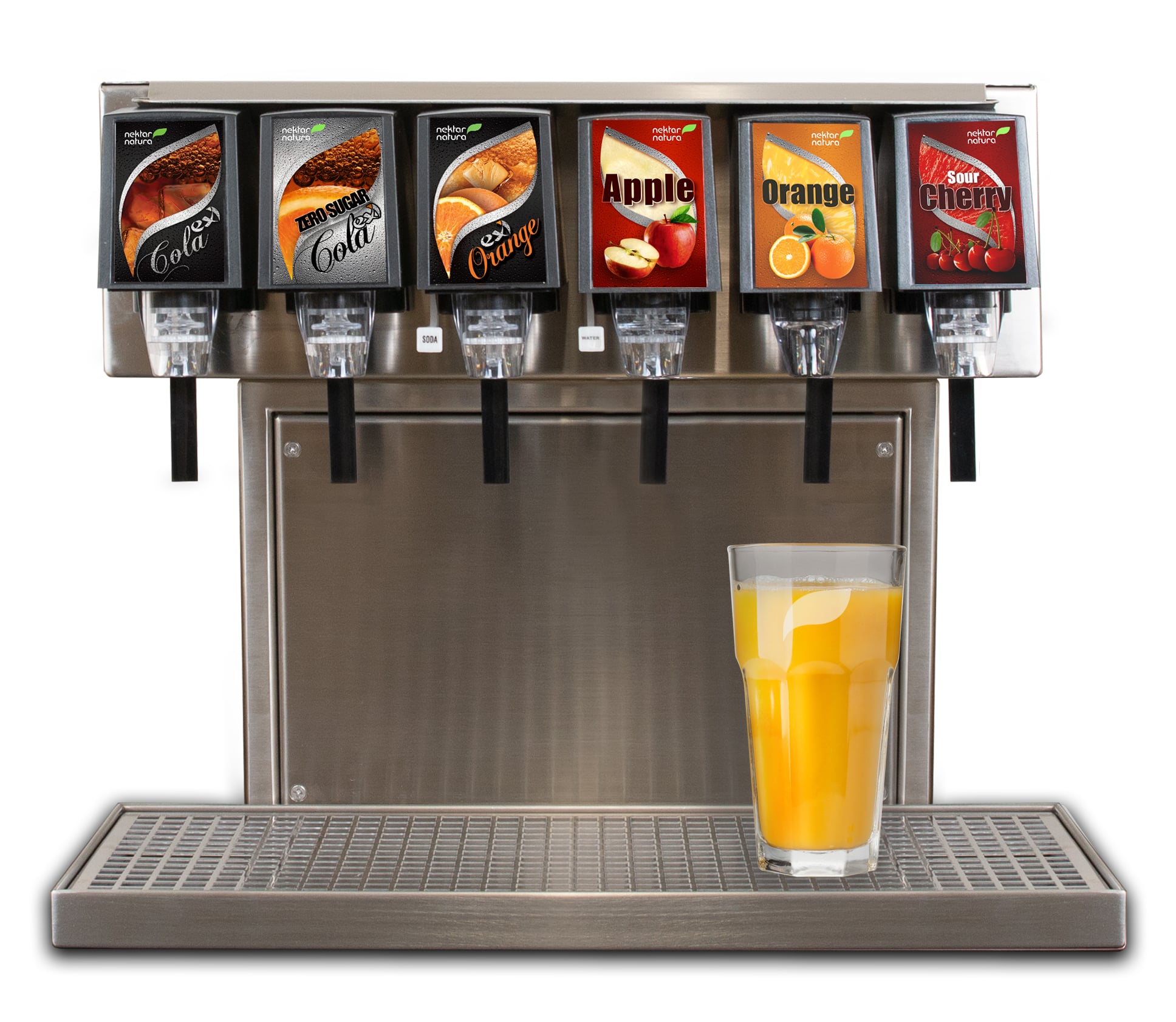 It can dispense all drinks except Premium products (juices with fruit pulp).